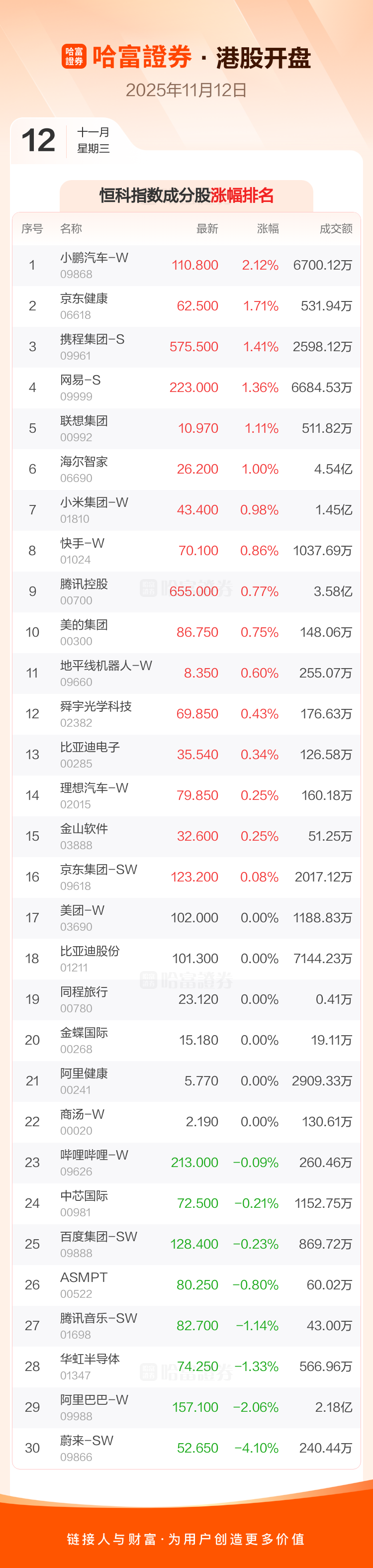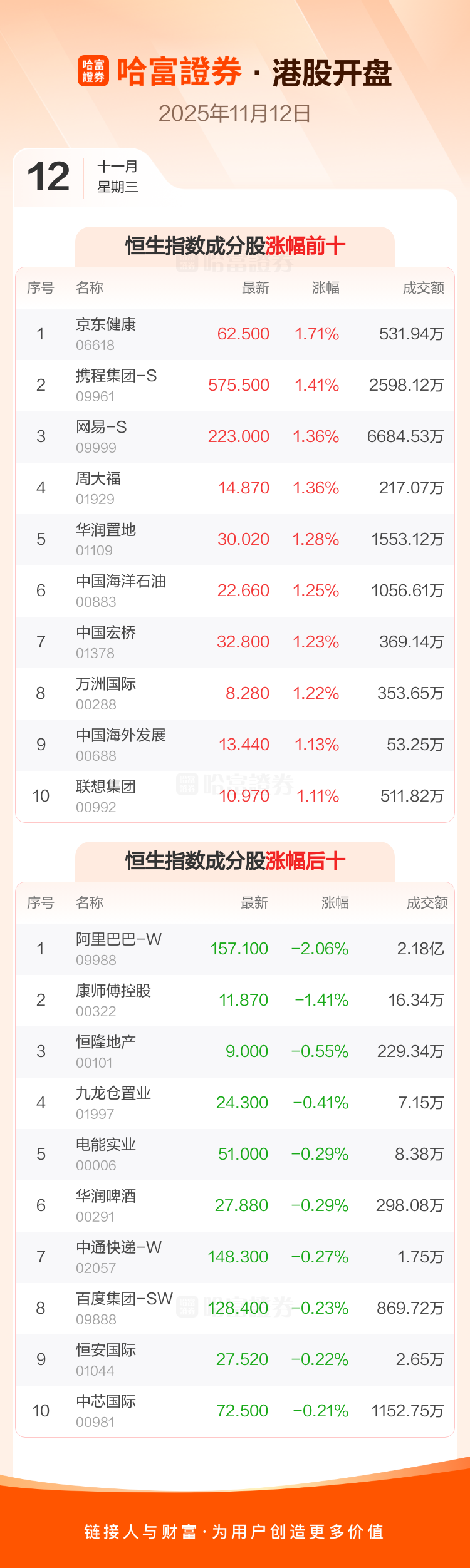 港股开盘:恒指高开0.22% 京东健康领涨成分股