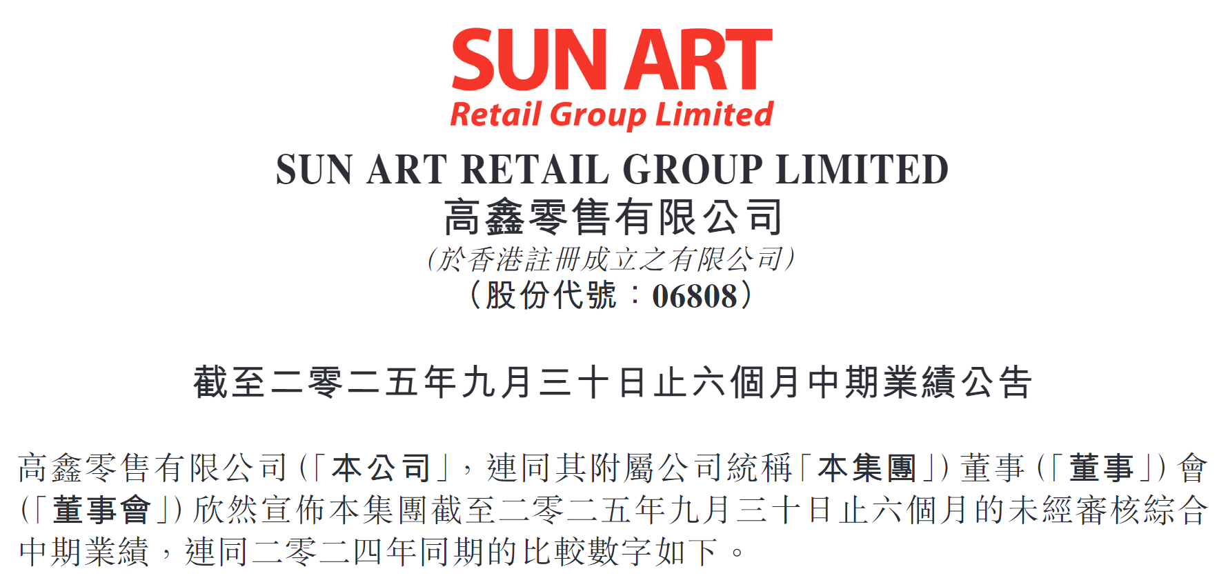 上证报中国证券网讯(记者曾庆怡)11月11日晚,港股上市公司高鑫零售发布截至2025年9月30日止六个月的2026财年中期业绩公告。财报显示,报告期内,高鑫零售收入为305.02亿元,毛利率为25.3%,同比增加0.7个百分点;净现金规模达119.58亿元,为业务运营与战略推进提供支撑。