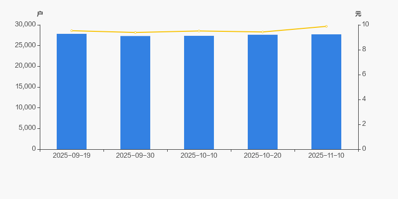 截至2025年11月10日,公司最新总股本为3.33亿股,其中流通股本为3.15亿股。户均持有流通股数量由上期的1.14万股下降至1.13万股,户均流通市值11.21万元。