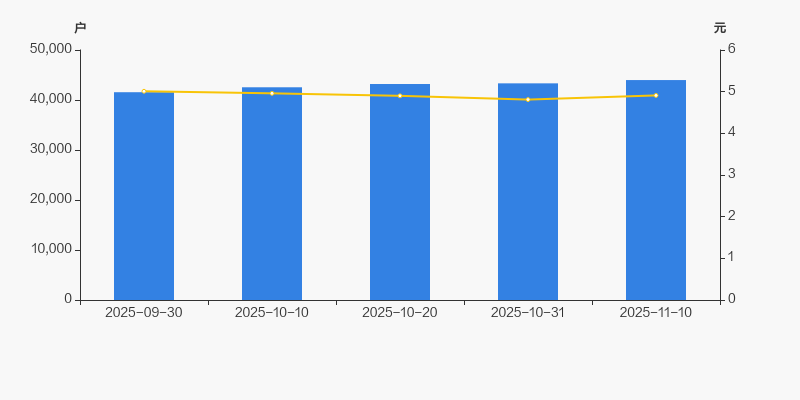 2025年9月30日至今,公司股东户数有所增长,区间涨幅为5.85%。2025年9月30日至2025年11月10日区间股价下降2.00%。