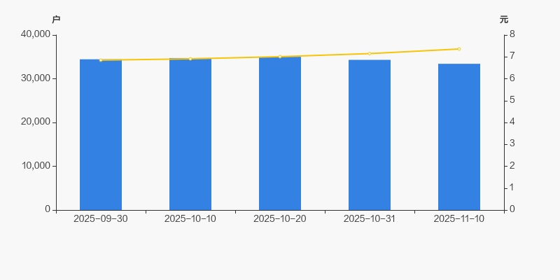 2025年9月30日至今,公司股东户数有所下降,区间跌幅为2.99%。2025年9月30日至2025年11月10日区间股价上涨7.45%。