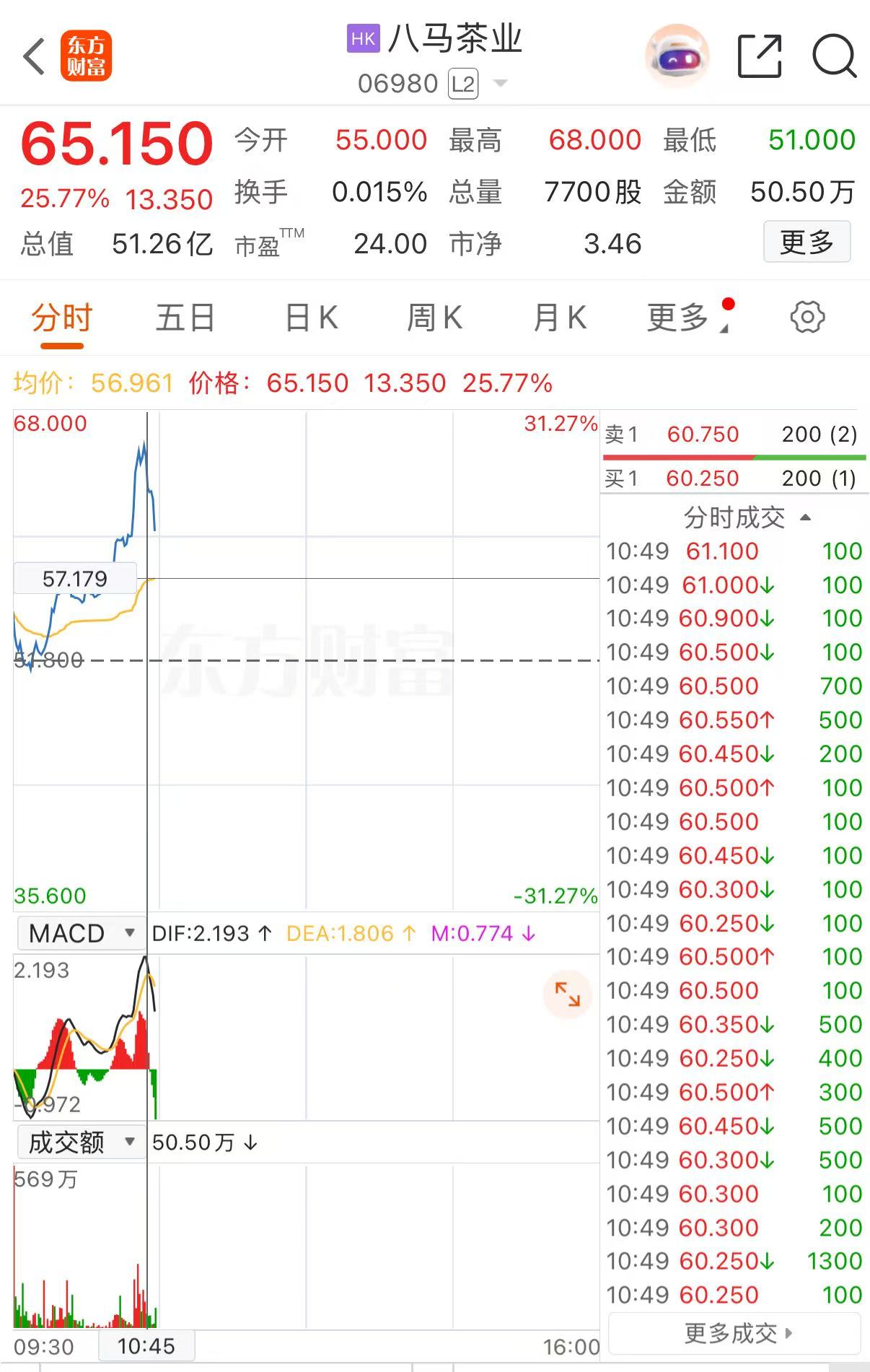港股异动 | 八马茶业早盘快速拉升 一度涨超31%