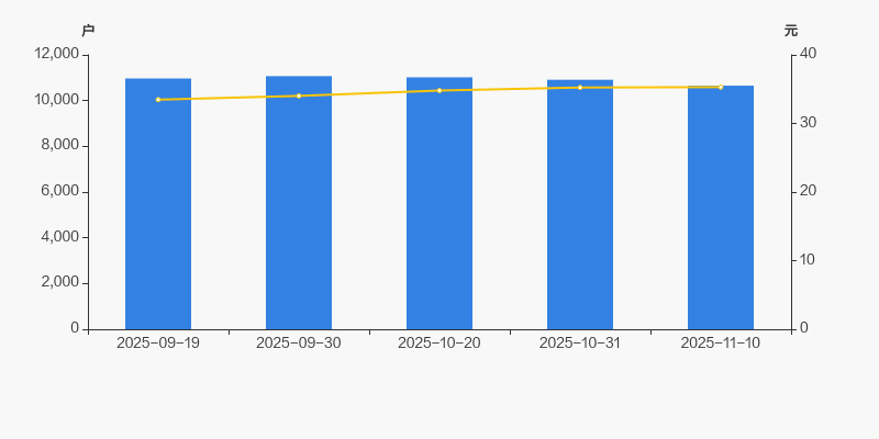 自2025年9月30日以来,公司股东户数连续3期下降,截至目前减幅为3.77%。2025年9月30日至2025年11月10日区间股价上涨3.76%。