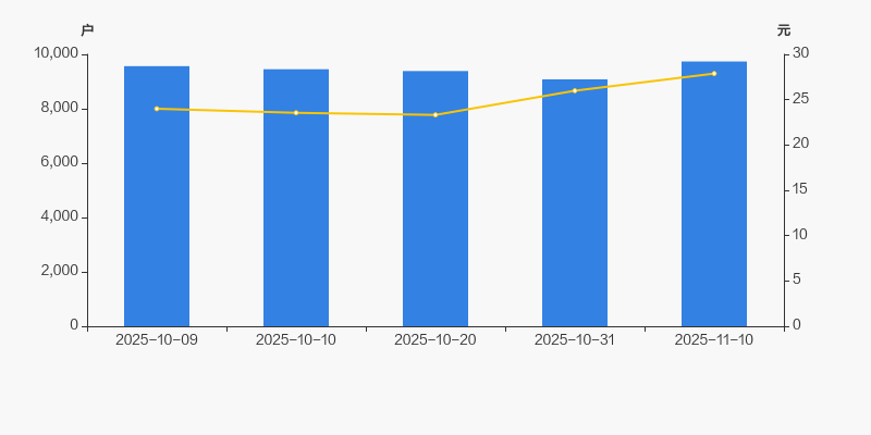 2025年10月9日至今,公司股东户数有所增长,区间涨幅为1.79%。2025年10月9日至2025年11月10日区间股价上涨16.17%。