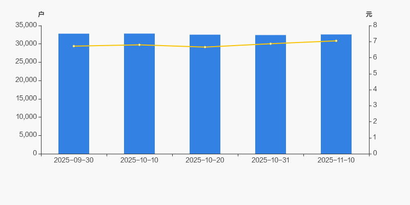 2025年9月30日至今,公司股东户数有所下降,区间跌幅为0.66%。2025年9月30日至2025年11月10日区间股价上涨4.91%。