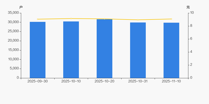 2025年9月30日至今,公司股东户数有所下降,区间跌幅为1.50%。2025年9月30日至2025年11月10日区间股价上涨0.33%。
