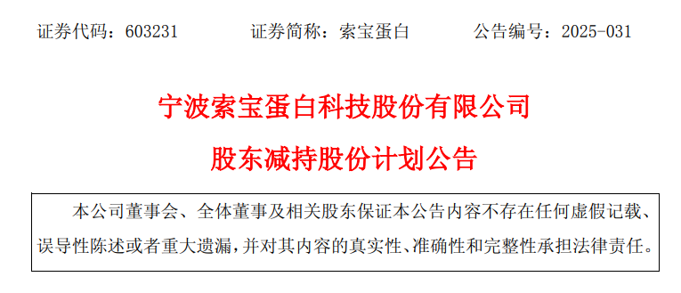 11月11日晚间,索宝蛋白(603231)公告,股东济南财金复星惟实股权投资基金合伙企业(有限合伙)(简称“济南复星”)和其一致行动人上海复星创富投资管理股份有限公司-宁波梅山保税港区复星惟盈股权投资基金合伙企业(有限合伙)(简称“宁波复星”)拟通过集中竞价或大宗交易方式,减持公司股份合计不超过574.38万股,即不超过公司总股本的3%。