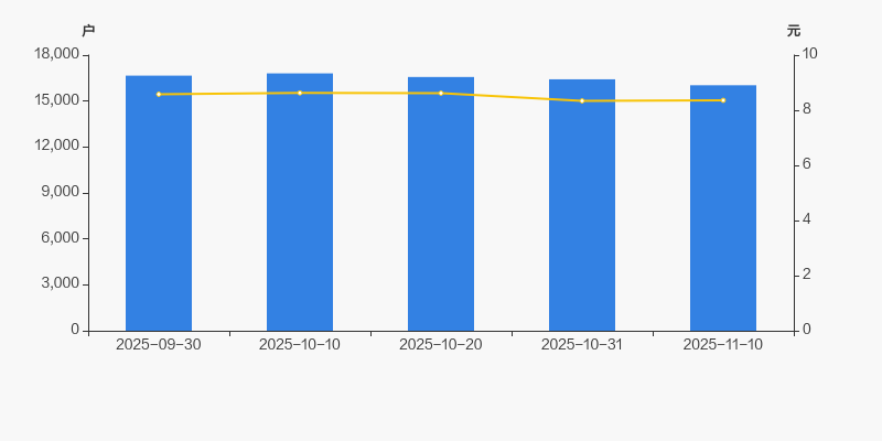 自2025年10月10日以来,公司股东户数连续3期下降,截至目前减幅为4.61%。2025年10月10日至2025年11月10日区间股价下降3.13%。