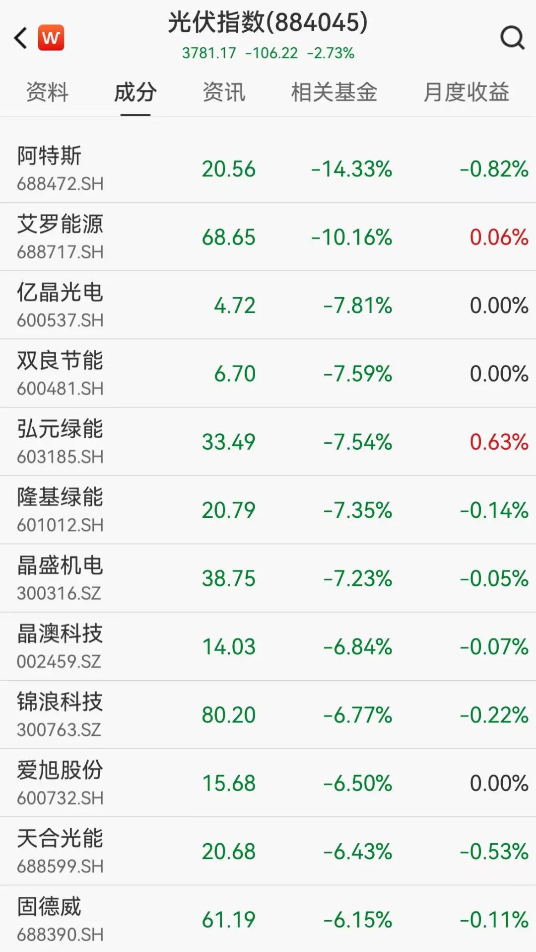 光伏板块多股重挫