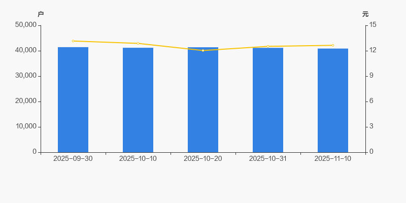 截至2025年11月10日,公司最新总股本为4.76亿股,其中流通股本为4.09亿股。户均持有流通股数量由上期的9943股上升至1万股,户均流通市值12.66万元。