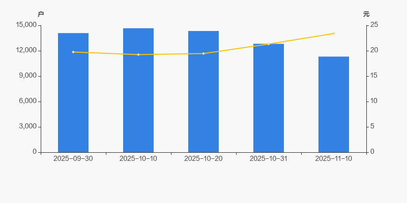 自2025年10月10日以来,公司股东户数连续3期下降,截至目前减幅为22.86%。2025年10月10日至2025年11月10日区间股价上涨21.62%。