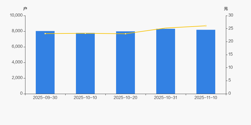 2025年9月30日至今,公司股东户数有所增长,区间涨幅为1.98%。2025年9月30日至2025年11月10日区间股价上涨12.94%。