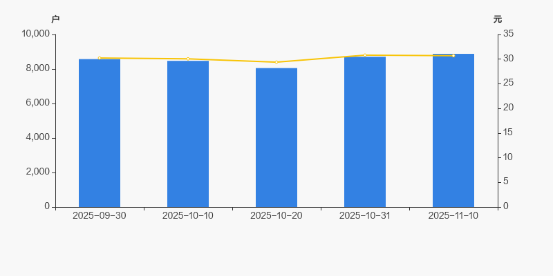 截至2025年11月10日,公司最新总股本为1.02亿股,且均为流通股。户均持有流通股数量由上期的1.17万股下降至1.15万股,户均流通市值35.31万元。