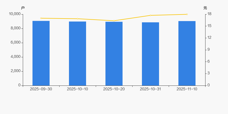 2025年9月30日至今,公司股东户数有所下降,区间跌幅为0.28%。2025年9月30日至2025年11月10日区间股价上涨5.76%。