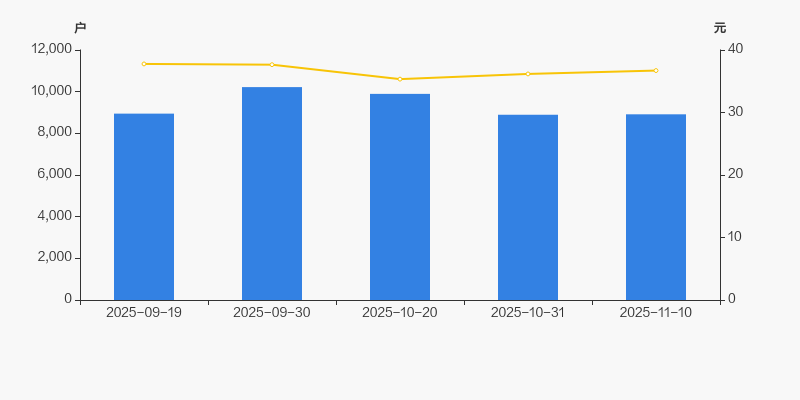 2025年9月19日至今,公司股东户数有所下降,区间跌幅为0.37%。2025年9月19日至2025年11月10日区间股价下降2.81%。