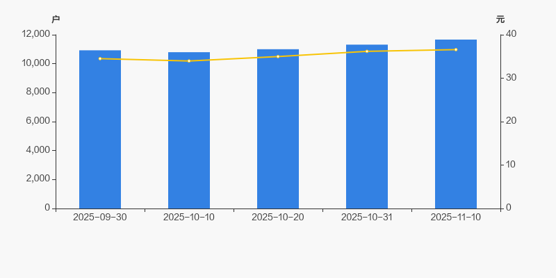 自2025年10月10日以来,公司股东户数连续3期上涨,截至目前增幅为8.07%。2025年10月10日至2025年11月10日区间股价上涨7.71%。