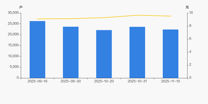 2025年9月19日至今,公司股东户数显著下降,区间跌幅为14.82%。2025年9月19日至2025年11月10日区间股价上涨4.73%。