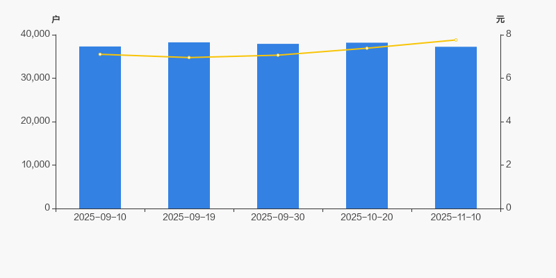2025年9月10日至今,公司股东户数有所下降,区间跌幅为0.18%。2025年9月10日至2025年11月10日区间股价上涨9.30%。