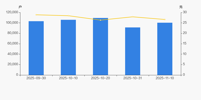 2025年9月30日至今,公司股东户数有所下降,区间跌幅为2.83%。2025年9月30日至2025年11月10日区间股价下降7.79%。