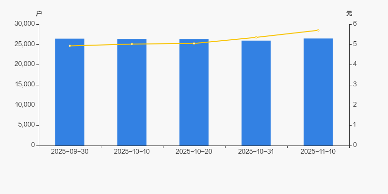 2025年9月30日至今,公司股东户数有所增长,区间涨幅为0.14%。2025年9月30日至2025年11月10日区间股价上涨15.62%。