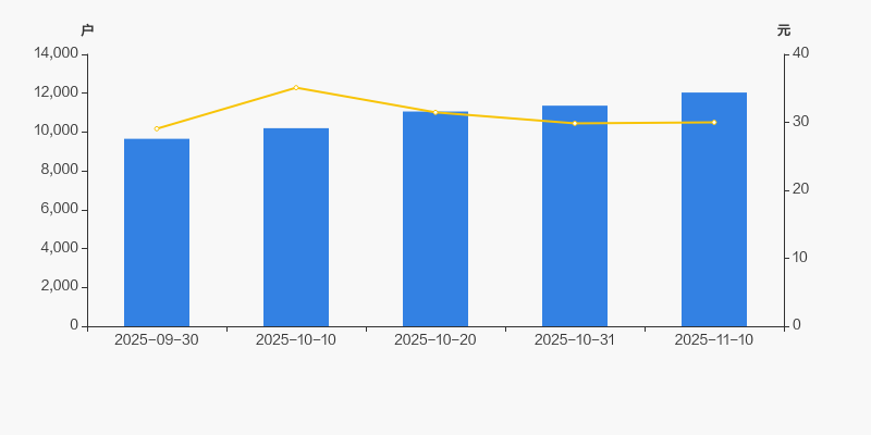 截至2025年11月10日,公司最新流通股本为1.2亿股。户均持有流通股数量由上期的1.06万股下降至9971股,户均流通市值29.91万元。