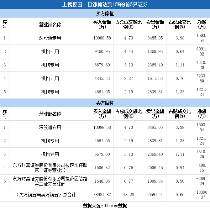 龙虎榜数据显示,今日共6个机构席位出现在龙虎榜单上,分别位列买二、买三、买四、买五、卖二、卖三,合计净买入1.75亿元,占龙虎榜净买额的94.92%。