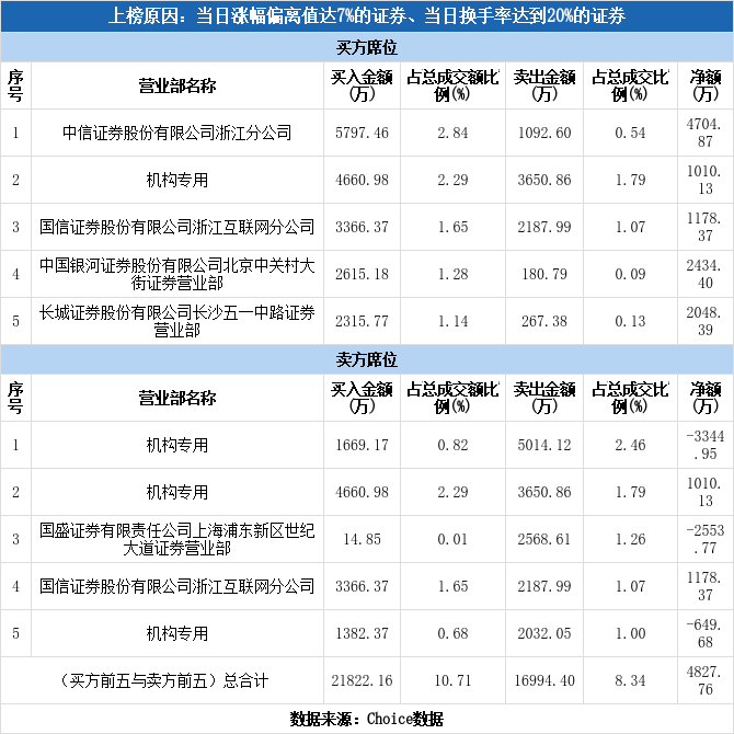 龙虎榜数据显示,今日共4个机构席位出现在龙虎榜单上,分别位列买二、卖一、卖二、卖五,合计净卖出2984.50万元,占该股今日总成交额的1.46%。