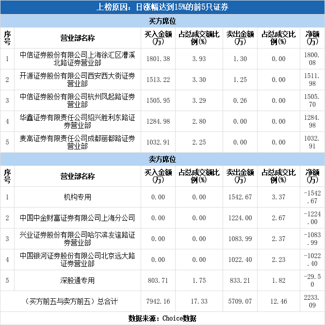 多主力现身龙虎榜,博晖创新涨停(11-12)
