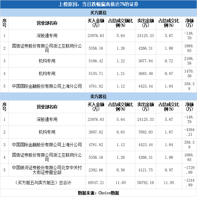 今日龙虎榜单上出现了深股通的身影,占据了买一、卖一的位置,净卖出148.70万元,占当日成交总额的0.03%。