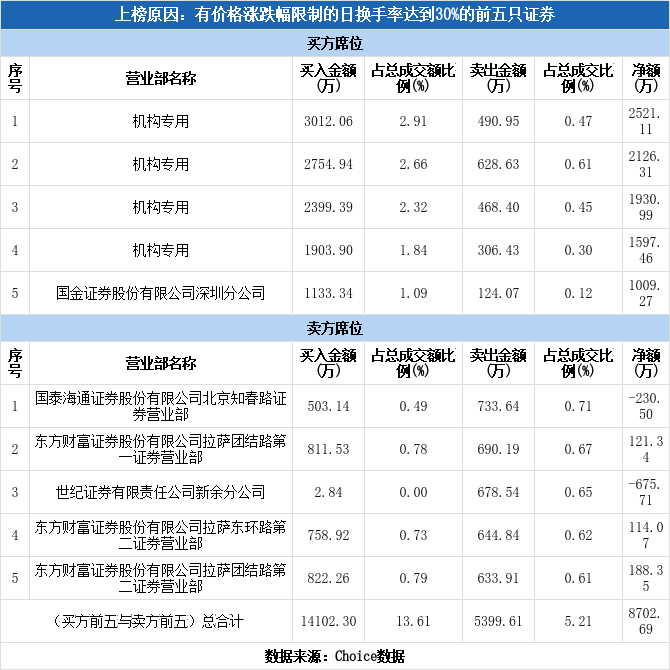 龙虎榜数据显示,今日共4个机构席位出现在龙虎榜单上,分别位列买一、买二、买三、买四,合计净买入8175.87万元,占龙虎榜净买额的93.95%。