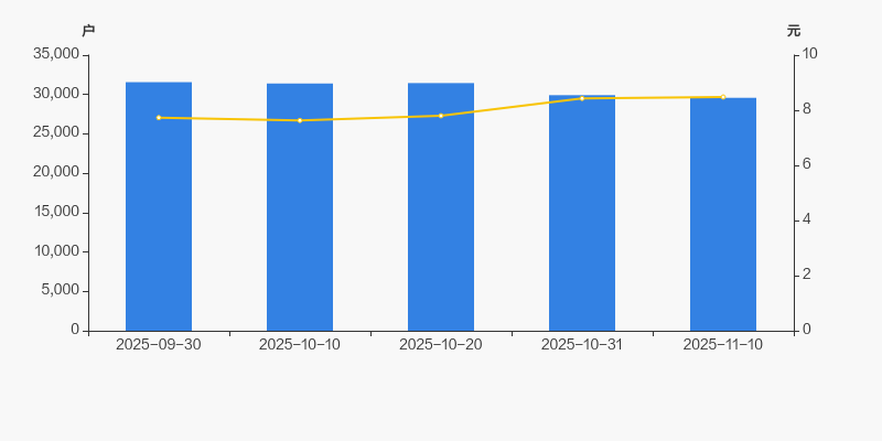 2025年9月30日至今,公司股东户数有所下降,区间跌幅为6.29%。2025年9月30日至2025年11月10日区间股价上涨9.70%。