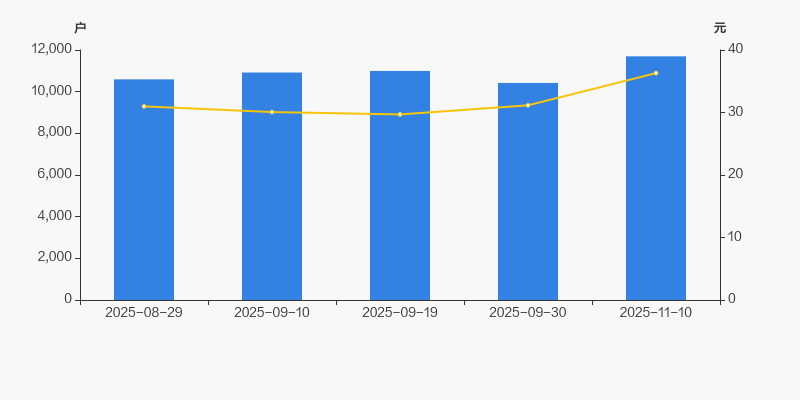 2025年8月29日至今,公司股东户数显著增长,区间涨幅为10.44%。2025年8月29日至2025年11月10日区间股价上涨17.18%。