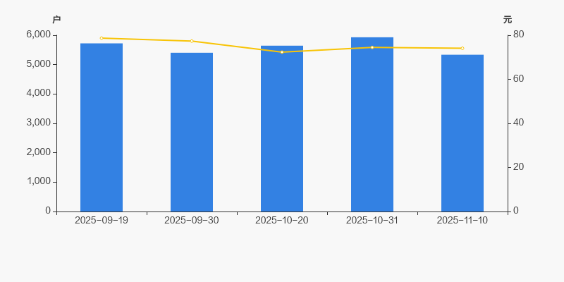 2025年9月19日至今,公司股东户数有所下降,区间跌幅为6.76%。2025年9月19日至2025年11月10日区间股价下降5.83%。
