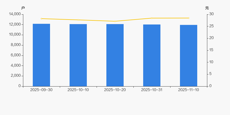 2025年9月30日至今,公司股东户数有所下降,区间跌幅为1.76%。2025年9月30日至2025年11月10日区间股价上涨0.89%。