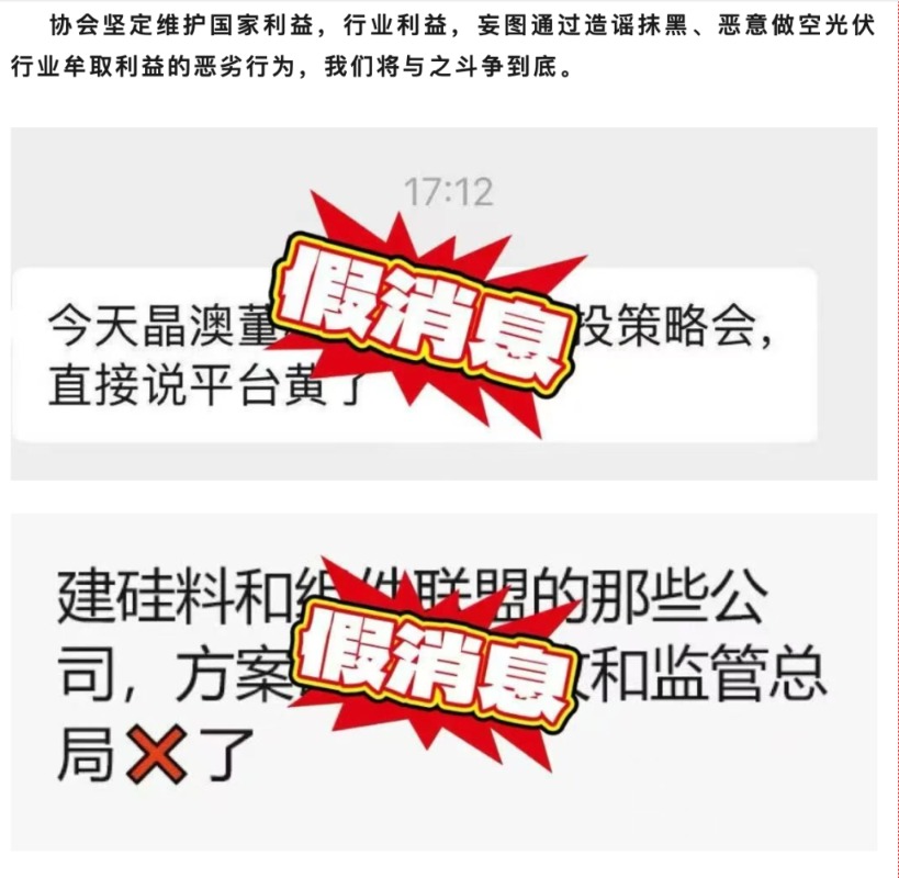 随后,光伏行业协会官方发文称,网络流传的小道消息均为不实信息,望请各位注意甄别,慎重决策。