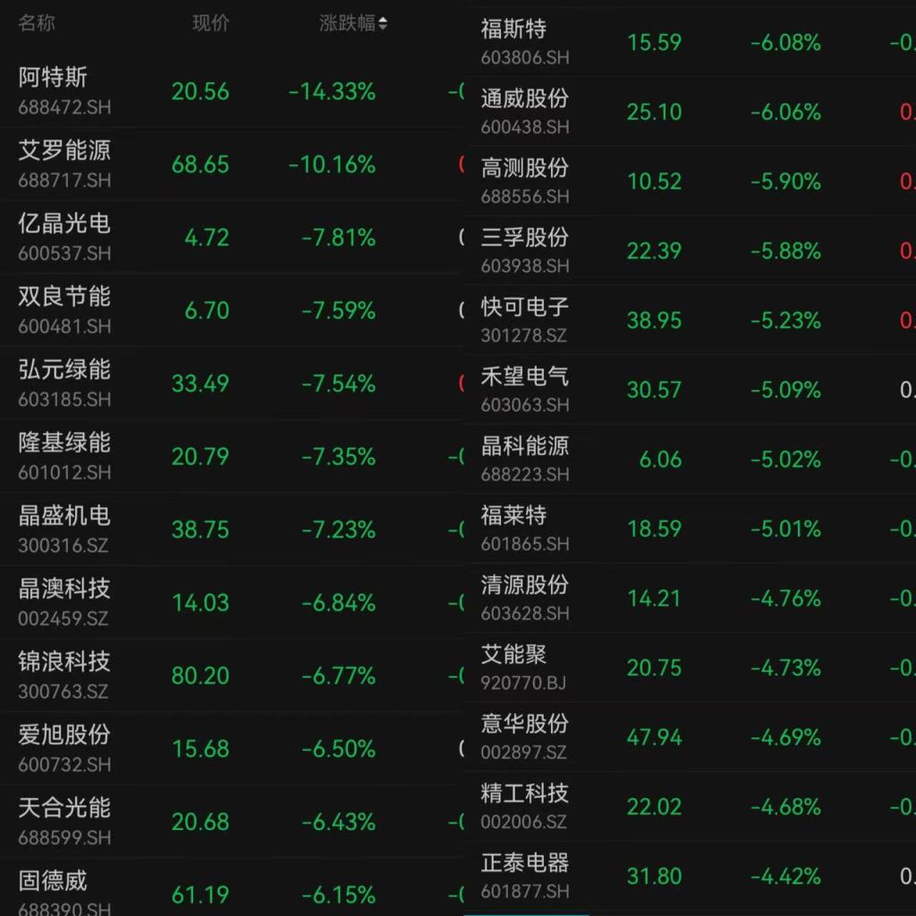 上述官方澄清披露后,光伏板块个股跌幅有所收窄,多晶硅期货主力合约强势反弹、日内由跌转涨。但截至收盘,光伏股仍大面积收跌。