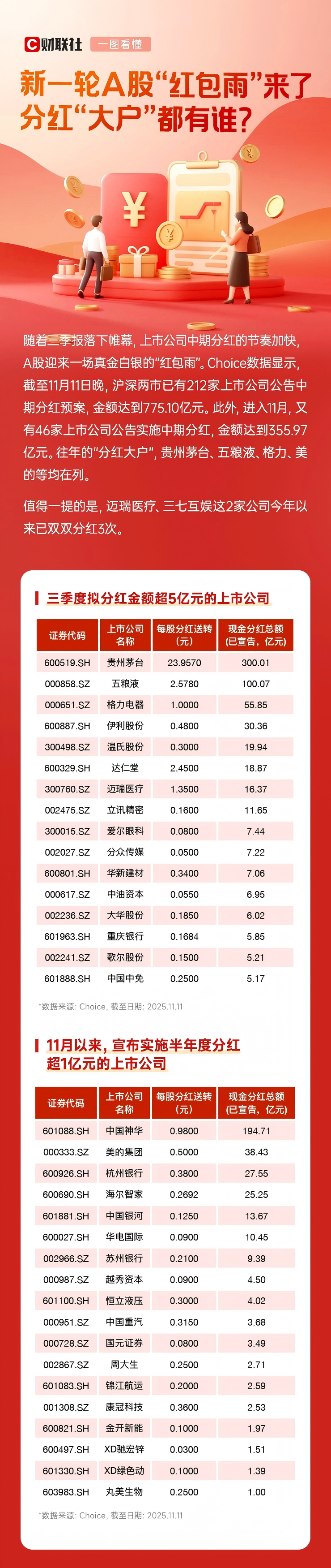新一轮A股“红包雨”来了 分红“大户”都有谁?