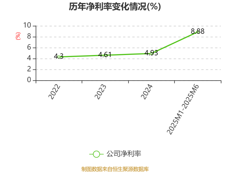 资产重大变化方面,截至2025年6月,公司存货较上期末减少13.39%,占公司总资产比重下降3.19个百分点;交易性金融资产较上期末减少28.49%,占公司总资产比重下降1.8个百分点;预付账款较上期末增加44.58%,占公司总资产比重上升1.7个百分点;应收票据及应收账款较上期末增加3.57%,占公司总资产比重上升1.5个百分点。