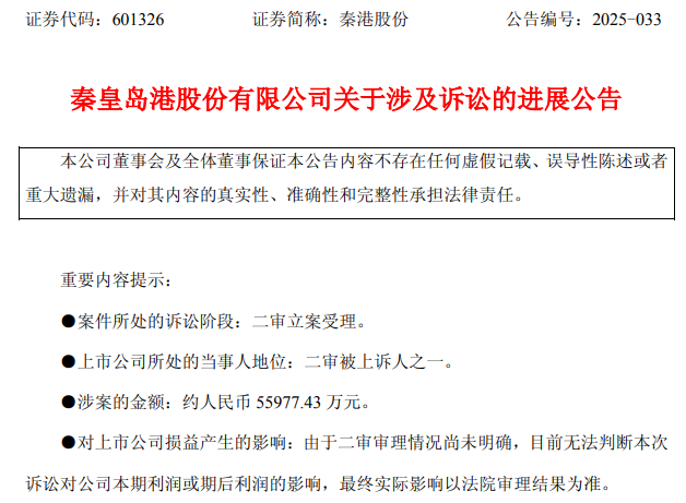 涉案金额约5.6亿元,秦港股份被上诉案件将二审,公司前三季营利均微增