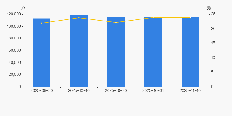 2025年9月30日至今,公司股东户数有所增长,区间涨幅为2.20%。2025年9月30日至2025年11月10日区间股价上涨8.68%。