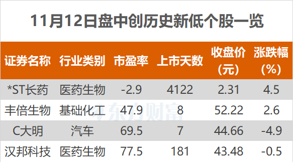 东方财富Choice数据显示,今日有4只个股盘中股价创历史新低。