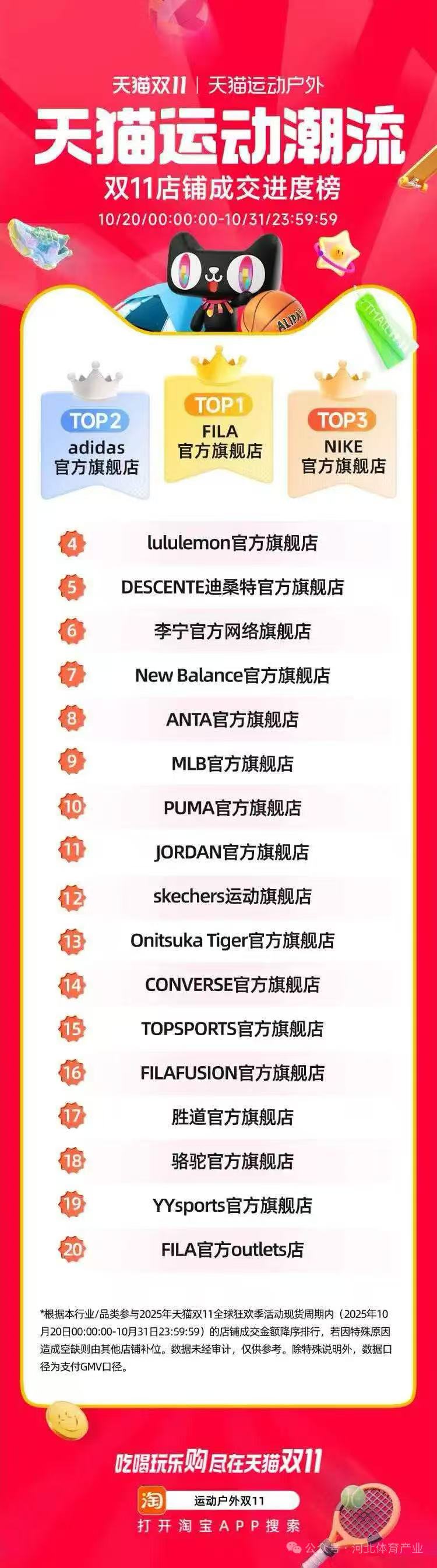 2025双十一前半程户外运动品牌销售榜图片来源:天猫