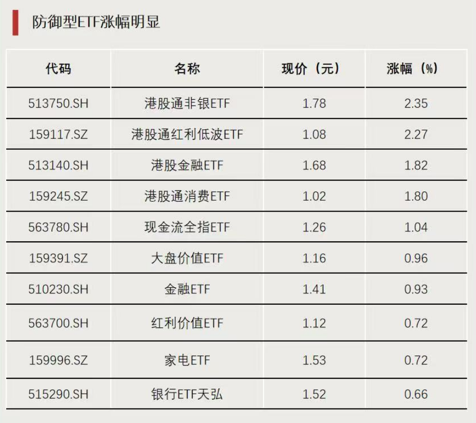 防御型ETF涨幅明显