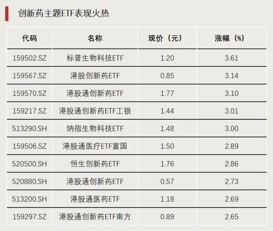 创新药主题ETF表现火热