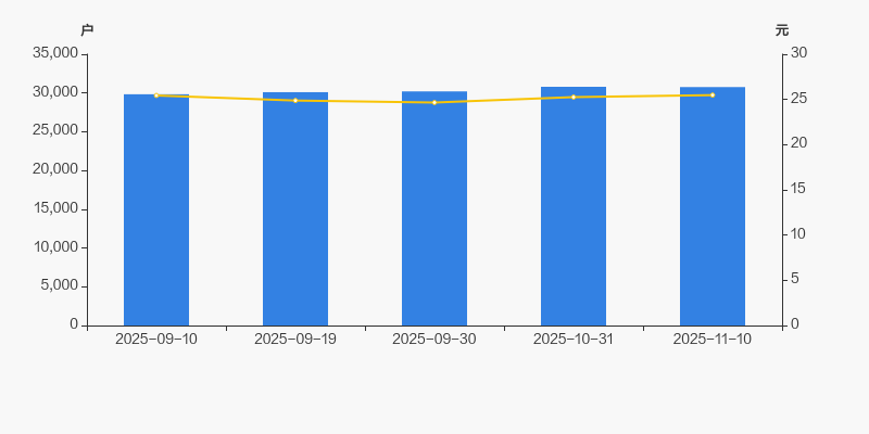 2025年9月10日至今,公司股东户数有所增长,区间涨幅为3.10%。2025年9月10日至2025年11月10日区间股价上涨0.14%。