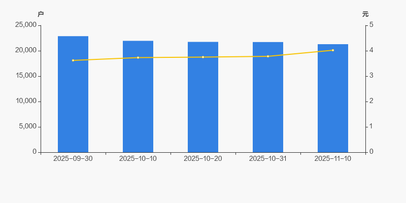 自2025年9月30日以来,公司股东户数连续4期下降,截至目前减幅为6.90%。2025年9月30日至2025年11月10日区间股价上涨11.05%。