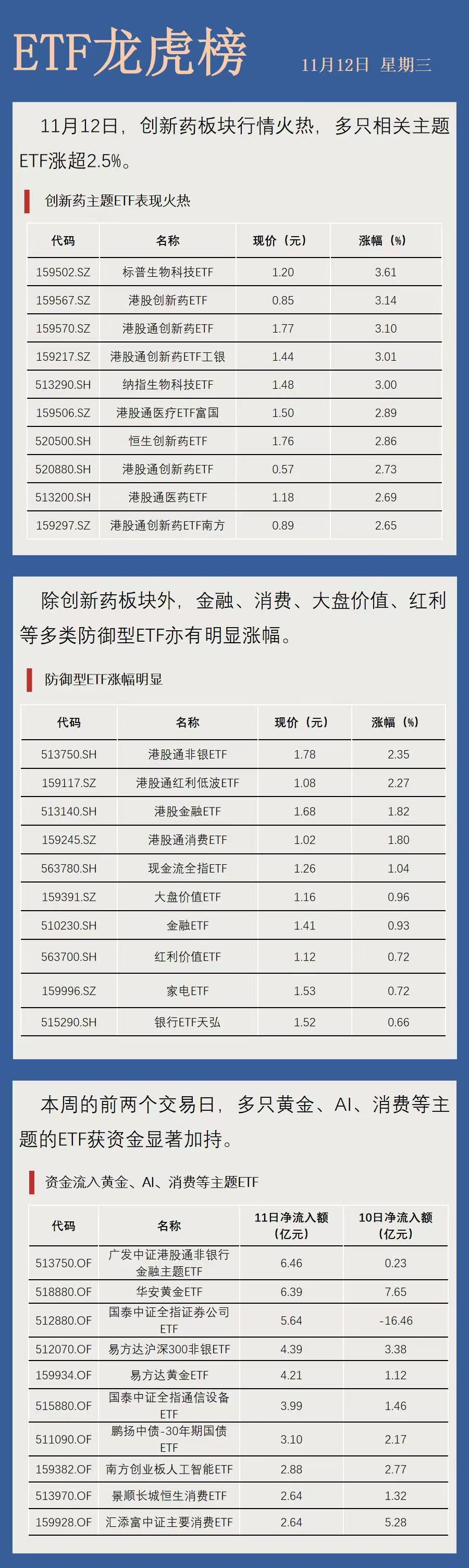 【ETF龙虎榜】创新药强势回归 多只ETF涨超3%