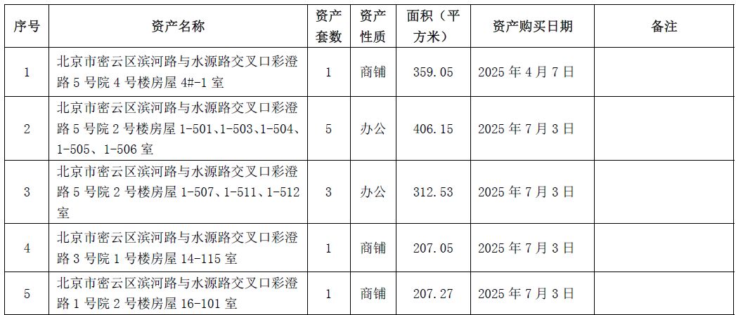 公告称,“本次交易标的资产为位于北京市密云区、杭州市江干区的部分不动产,不存在抵押、质押或者其他第三人权利,不存在涉及交易标的的重大争议、诉讼或仲裁事项,不存在查封、冻结等司法措施”。