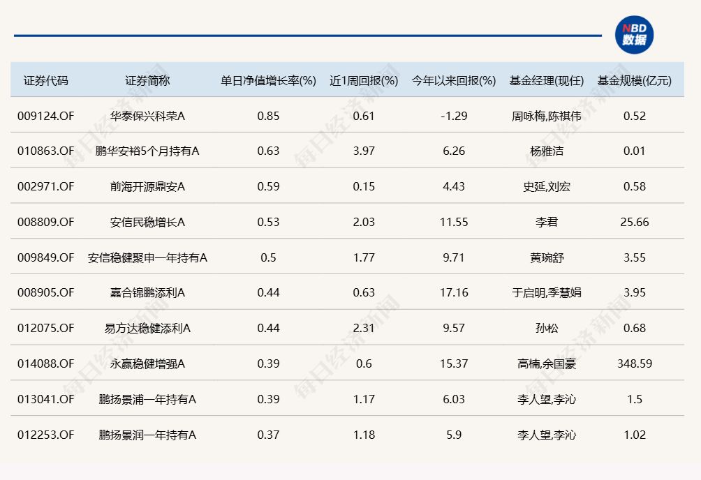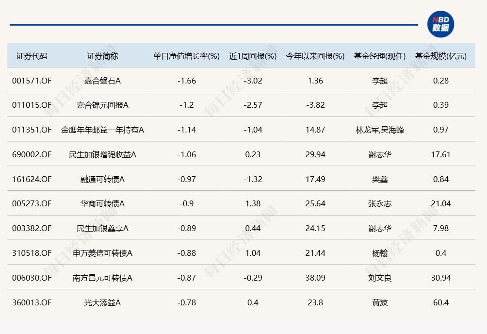 3.单日债基涨跌幅榜