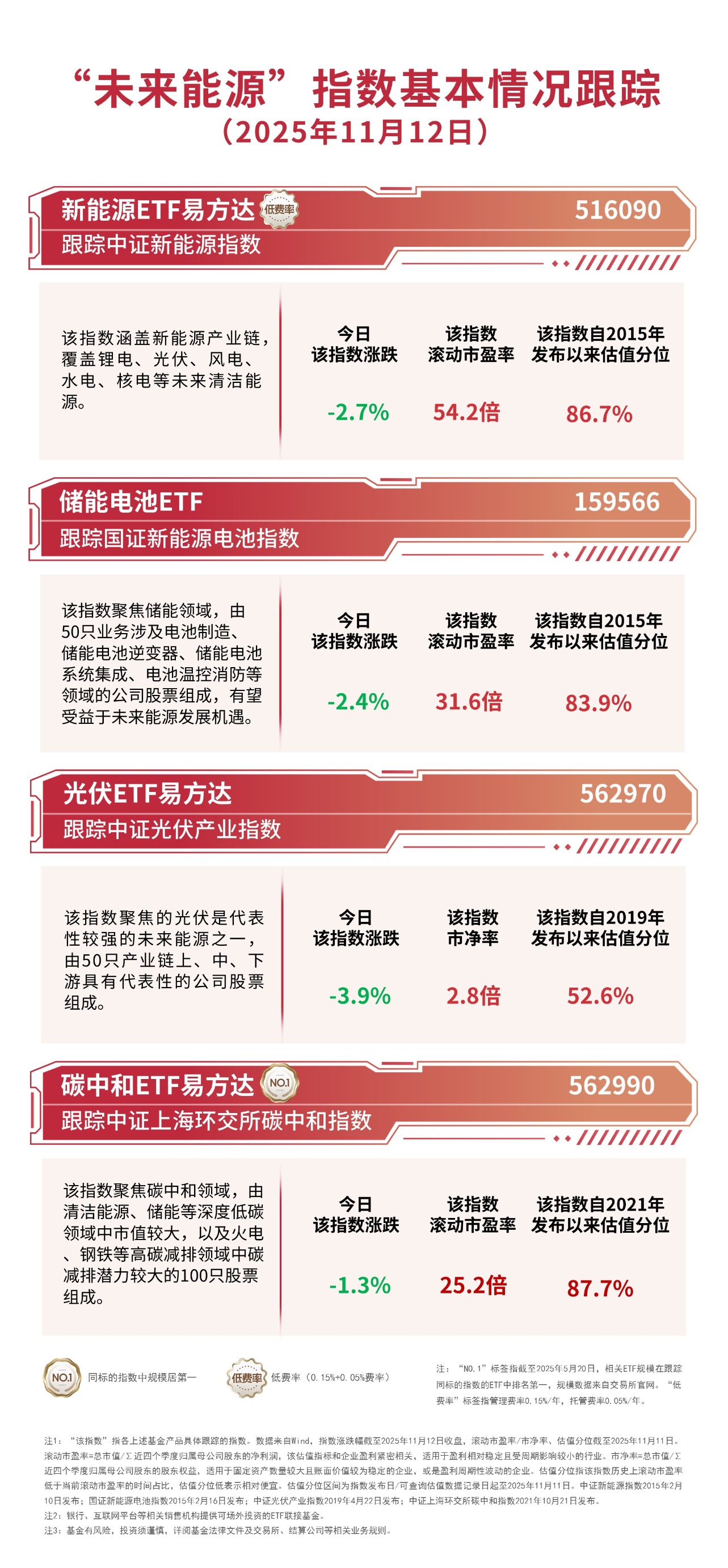 截至收盘,中证上海环交所碳中和指数下跌1.3%,国证新能源电池指数下跌2.4%,中证新能源指数下跌2.7%,中证光伏产业指数下跌3.9%,储能电池ETF(159566)逆势获4500万份净申购。Wind数据显示,该ETF此前连续9个交易日获资金净流入,合计近10亿元。